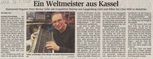 Ein Chor aus einem Dorf bei Gütersloh geht auf Reise nach Afrika, um dort nicht weniger als bei der Weltmeisterschaft der Chöre mitzumachen – und zu gewinnen. Und ein Kasseler Hammond-Organist und -Spezialist hat einen Anteil an dem Erfolg: Peter Becker spielt in der Band mit, die zum Chor gehört. Und: Statt mit einem kamen Chor und Band gleich mit zwei Titeln zurück – Gold und Silber für den Gospelchor Rejoice aus Langenberg bei den „World-Choir-Games" in Südafrika in den Kategorien „Spiritual" (Gold) und „Gospel" (Silber). Die Weltmeisterschaft der Chöre ist ein großer internationaler Wettbewerb, der alle zwei Jahre in einem anderen Land stattfindet. In Pretoria haben vom 9. bis 15. Juli Chöre aus über 60 Ländern daran teilgenommen - die Chöre mussten sich qualifizieren. „Ich kann es selbst kaum glauben", sagt Peter Becker kurz nach der Rückkehr. „Der Chor komme derzeit aus dem Feiern nicht mehr heraus. Beim Chorleiter steht das Telefon nicht mehr still. Ich bin stolz, dabei gewesen sein zu dürfen." Die Besonderheit sei, dass es sich um einen Dorf-Chor handele, in dem es keine Profisänger gibt. Das sei bei den anderen Teilnehmern oft anders gewesen. „Es sind ganz normale Leute wie du und ich, zwischen 15 und 75 Jahren", so Becker. Chorleiter Roland Orthaus habe in den vergangenen 20 Jahren den Chor aufgebaut, der nun weltweit seines gleichen suche. Über 50 der 80 Sänger waren dann auch mit dabei in Südafrika. Becker spielte als Hammond-Organist in der vierköpfigen Begleitband. Der Kasseler ist der einzige Nicht-Profi in der Band. „Es ist für mich auch ein persönlicher Erfolg, der sich wahrscheinlich für mich als Amateur nicht mehr toppen lässt", sagt Becker. Als einziger Chor war der Dorf-Gospelchor mit einer Harnmond-Orgel vertreten - mit Spezialist Peter Becker. Der hatte im Vorfeld deshalb auch einiges zu tüfteln: „Ich habe aufgrund des Gewichtes ein digitales Keyboard von Hammond mitgenommen. Dieses habe ich vorher modifiziert, um den Klang einer Hammondorgel mühsam einzuprogrammieren", sagt er. Daher sei das Instrument nun einzigartig und klanglich überragend. Viel Zeit hatten Chor und Band nicht, um die Jury zu überzeugen: Jeweils nur 15- minütige Wettbewerbsauftritte vor Publikum und internationaler Jury im State Theater Opera House und einen Tag später in der St. Albans Cathedrale von Pretoria mussten genügen - und das taten sie: Gold und Silber - und ein Stück vom Glück landet auch in Kassel.