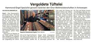 Kassel - Eine Hammond-Orgel hat eine Seele - ihr Klang ist einzigartig. Einer, der das Seelenleben einer solchen Orgel bis ins kleinste Detail kennt, ist Peter Becker. Der Kasseler Architekt hat sein Hobby zur· Leidenschaft ausgebaut und ist führender Spezialist, wenn es beispielsweise um die Reparatur einer B3 Harnmond-Orgel geht. Zu seinen Kunden gehört Helge Schneider. Doch auch als Organist ist der Tüftler gefragt. Und das sehr erfolgreich. Er begleitet den Laien-Gospelchor Rejoice aus Langenberg bei Gütersloh an der Orgel bei Konzerten. Dass es sich nicht um einen gewöhnlichen Chor vom Dorfe handelt, stellten die Sänger Ende vergangenen Jahres erneut unter Beweis. Bei den World Choir Games in Antwerpen gewann der Chor unter der Leitung von Roland Orthaus die Goldmedaille als bester Chor in der Kategorie „Gospel & Spirituals". „Was dieser Chor auf die Beine stellt, ist einfach unglaublich", sagt Becker. Bereits 2018 gewann der Chor in Südafrika bei den Chor Weltmeisterschaften Gold und Silber, ebenfalls mit Unterstützung von Becker. Er hatte eine elektronische Hammond-Orgel gebastelt, in dem er ein Keyboard modifiziert und mit dem charakteristischen Klang programmierte. Dadurch konnte er das Instrument auf der weiten Reise transportieren. Ein weiterer Höhepunkt für Chor und Becker musste coronabedingt abgesagt werden: das BVB-Weihnachtssingen vor 70 000 Fans im Signal Iduna Park. Vor Corona, 2019, waren der Chor und Peter Becker mit dabei. Die nächsten World Choir Games finden in Gangneung in Südkorea statt. „Das ist natürlich sehr weit. Wir versuchen aber trotzdem teilzunehmen", so Becker. Da die Kosten von den Teilnehmern selbst getragen werden müssen, können vermutlich nicht alle Chormitglieder mitreisen. Becker aber steht bereit und packt seine Hammond- Orgel für die Reise nach Asien ein.